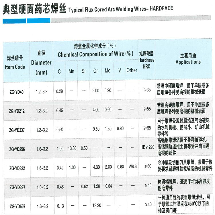 產(chǎn)品名稱:典型硬面藥芯焊絲